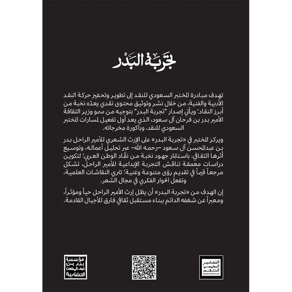 احتفاءً بتجربة الأمير الراحل بدر بن عبد المحسن الشعرية، خمسة عشر ناقدًا سعوديًا وعربيًا يشاركون بأوراق علمية ودراسات متعمقة في شعر الأمير الراحل. تصدر في كتاب تحت عنوان تجربة البدر ضمن مبادرة المختبر السعودي للنقد التي تُعنى بتطوير وإثراء حركة النقد الأدبية والفنية من خلال توثيق ونشر المحتوى النقدي باستكتاب نخبة من ألمع النقّاد والأدباء العرب.